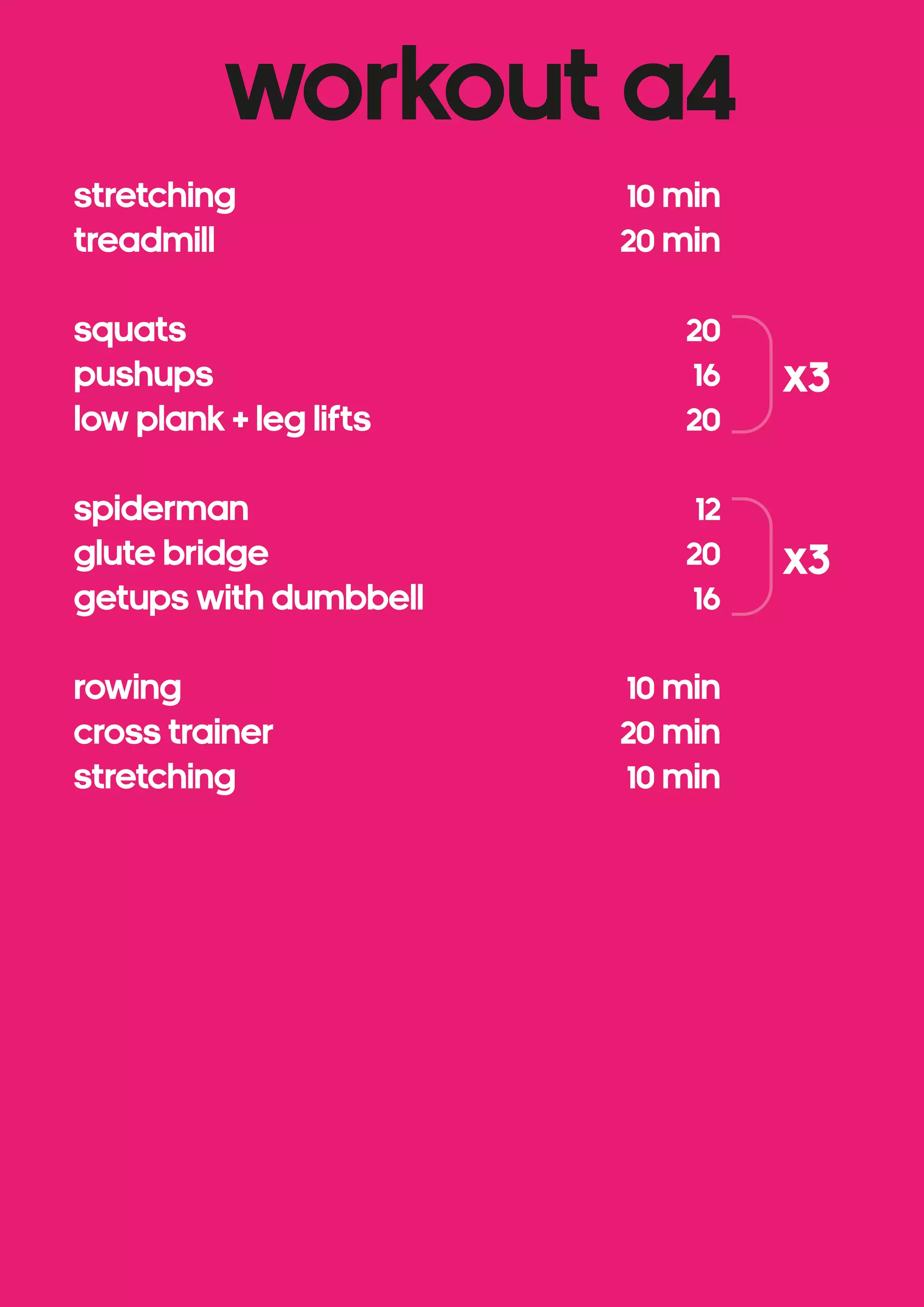 A Fun Engaging 20-Minute Rowing Workout for Beginners. Aim for a stroke rate of 18-24 SPM. Right side plank 1 min Supermans x10 hold 3 seconds at the top of each rep Bicycles x10 each side hold 2 sec at the top of each rep Hip ups x10 hold 3 seconds at the top of each rep.